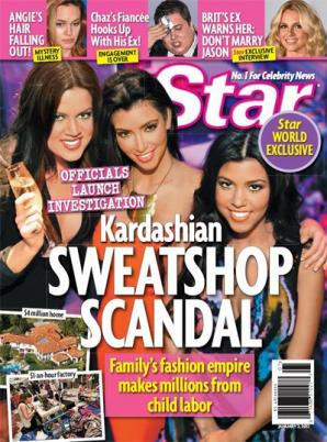 The latest issue of the tabloid quotes Charles Kernaghan - the head of the Institute for Global Labour and Human Rights - as saying the Kris Jenner-led clan employs youths in China to manufacture Kardashian merchandize in unsanitary warehouses.