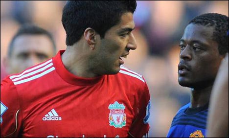 LONDON: Liverpool striker Luis Suarez's troubled disciplinary history hit a new low Tuesday when he was given an eight-match ban for racially abusing Manchester United defender Patrice Evra during a Premier League match.